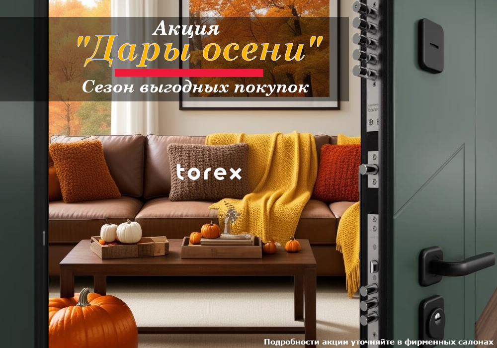 Осень — время создавать уют и подчеркивать свой стиль. Torex представляет сезон выгодных покупок, который поможет вам создать единственную в своём роде дверь.