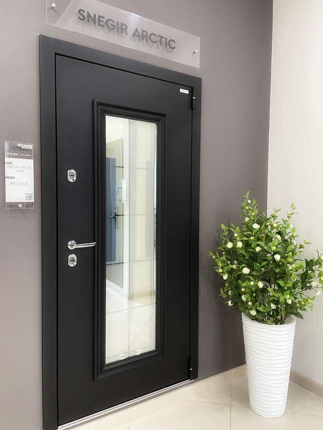 Комплексный подход к улучшению структуры позволил создать дверь с остеклением, основанную на модели Snegir ARCTIC. Вариант Snegir ARCTIC-C оборудован двумя стеклопакетами: тонированным внутренним и прозрачным внешним, а также декоративной решеткой, дополненной защитной накладкой. Чтобы повысить прочность дверного полотна, оно усилено ребрами жесткости по периметру стеклопакета.